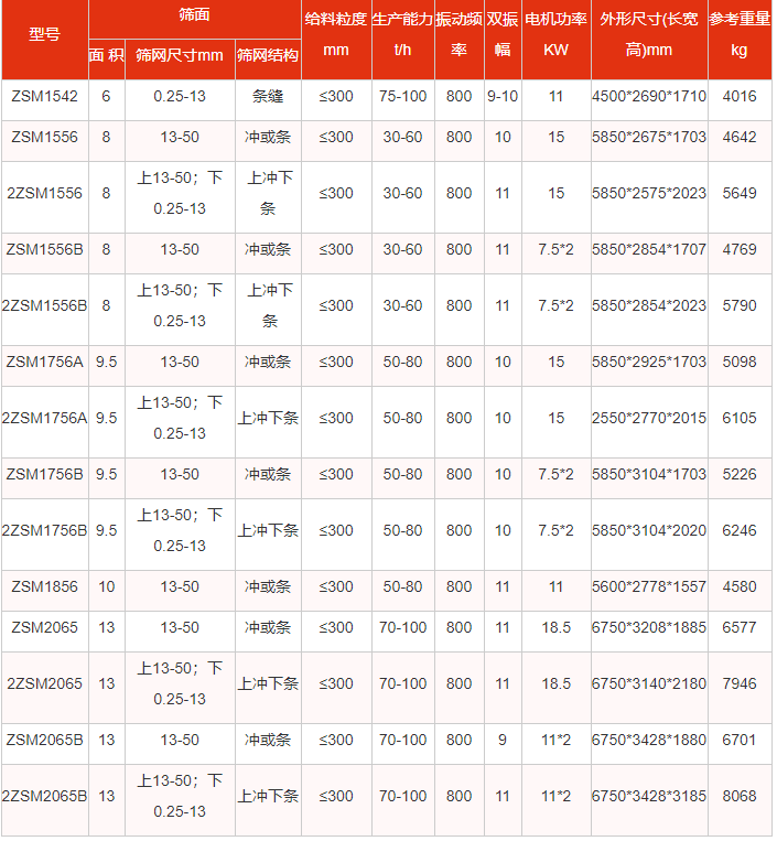1、筛机分单层和双层,并有单电机齿轮拖运和双电机自同步拖运之分。单电机拖运有左装和右装之分。 2、筛网结构有条缝筛网,冲孔筛板,如选用编织筛网和橡胶筛板可按要求设计。 3、为满足筛分效率要求,必要时可使筛面与水平面成倾角安装其值为2-10。 4、基础螺栓除ZSM185振动筛螺栓有M20和M16两种规格外,其余所有筛机基础螺栓均为M20,皆由用户自备。